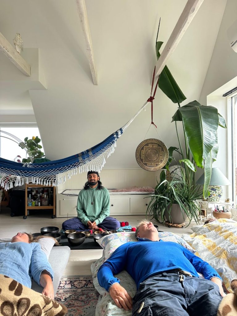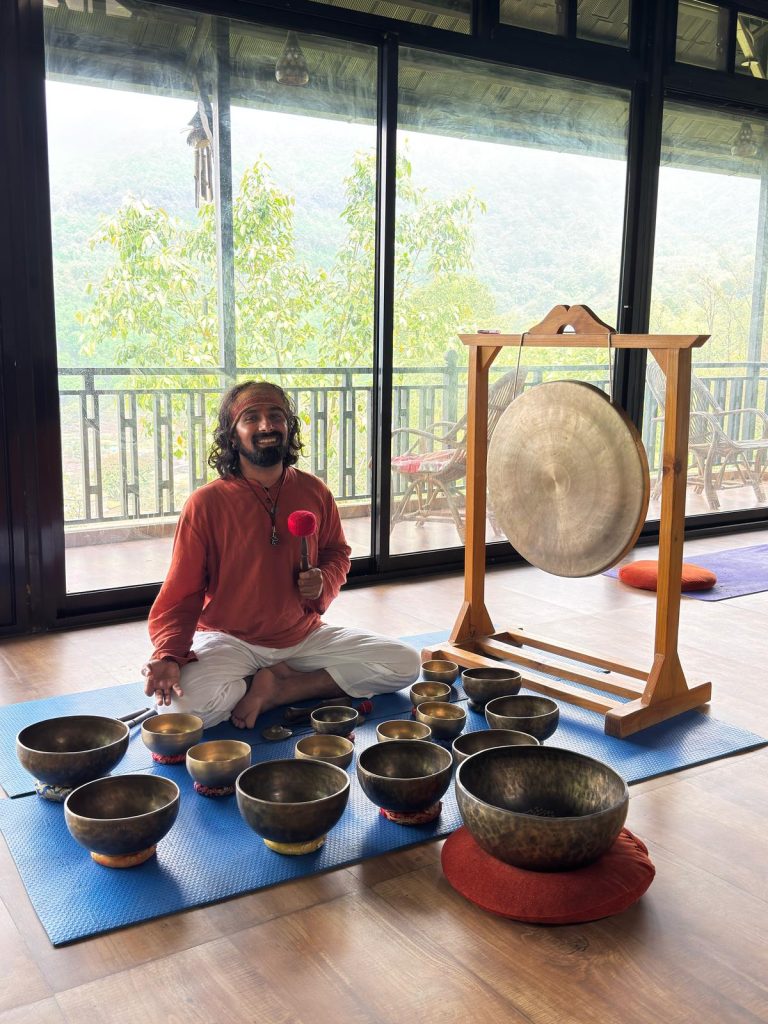 The “Shunya” (Silence) & Grounding (50-60 mins): The session concludes with five minutes of total silence to allow the body to integrate the healing, followed by grounding techniques using Tingsha bells to gently bring your awareness back.